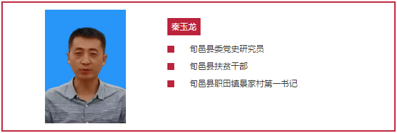秦玉龙,男,中共党员,31岁。2012年毕业于内蒙古农业大学,毕业后先后在旬邑县清塬镇人民政府、旬邑县委党史研究室工作。2018年5月被派驻旬邑县职田镇景家村担任第一书记。驻村期间,积极探索“党支部+合作社+贫困户”产业发展模式,注册成立旬邑县惠福农肉兔养殖专业合作社,树立身残志坚的残疾人景晓飞为致富带头人,带领全村群众脱贫致富,连续2年被评为全县优秀第一书记。
